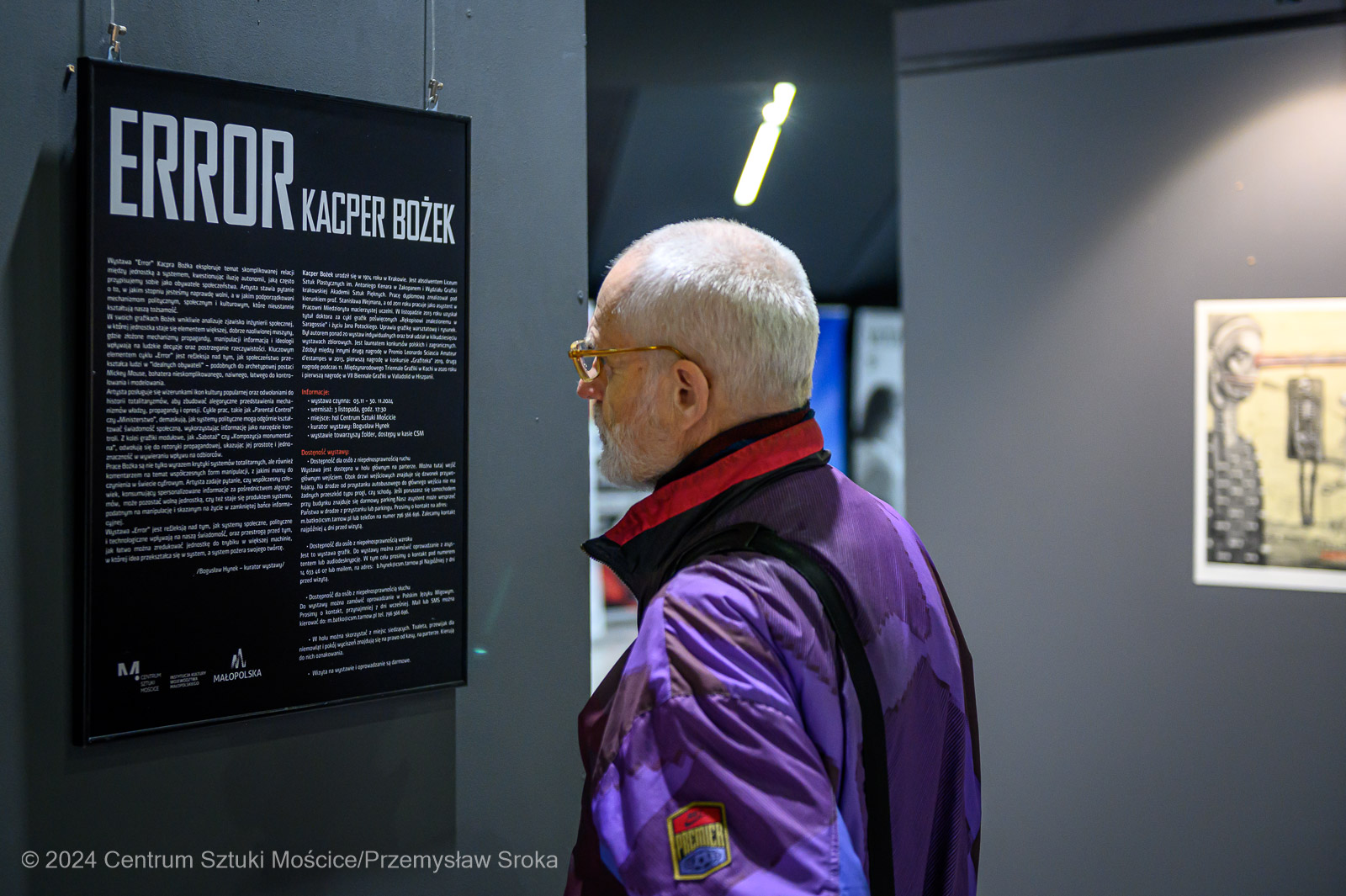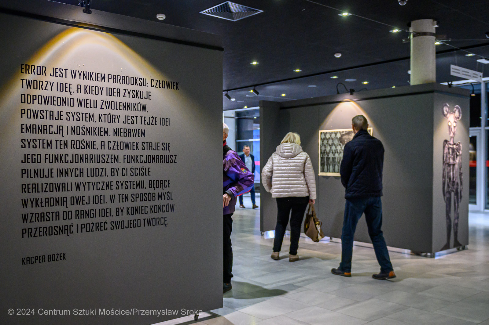Wystawa „Error” jest refleksją nad tym, jak systemy społeczne, polityczne i technologiczne wpływają na naszą świadomość, oraz przestrogą przed tym, jak łatwo można zredukować jednostkę do trybiku w większej machinie, w której idea przekształca się w system, a system pożera swojego twórcę.