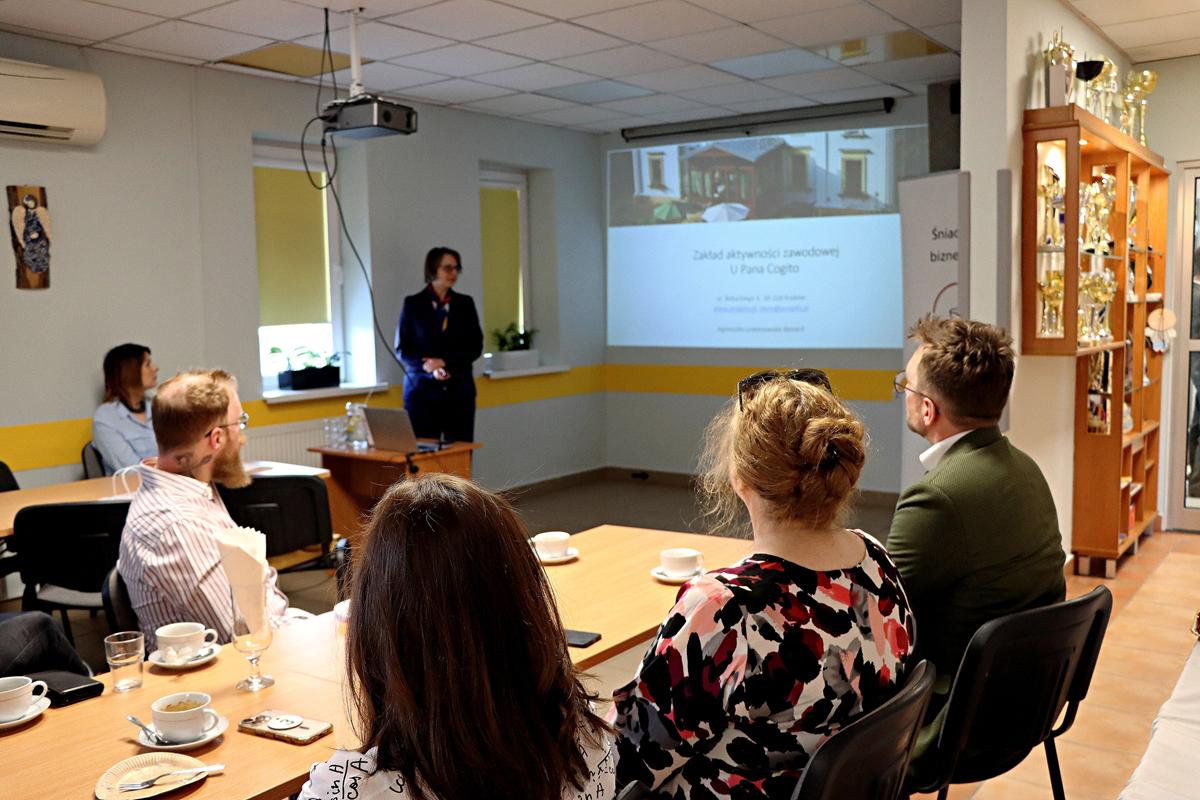 Cykl spotkań „Śniadanie biznesowe” integruje uczestników WTZ JP2 z przedstawicielami biznesu – zarówno małych firm, jak i dużych przedsiębiorstw. Podczas wydarzenia prezentowane są dobre praktyki zatrudniania osób z niepełnosprawnościami, a także dotychczasowe sukcesy uczestników WTZ. Dzięki temu przedsiębiorcy mogą lepiej poznać wyzwania i potencjał osób z niepełnosprawnościami na rynku pracy.