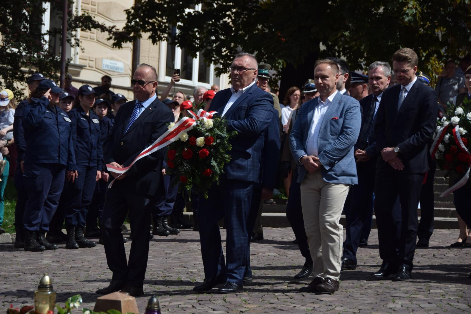 Tradycyjnie wieńce, wiązanki kwiatów i znicze pamięci złożyli: parlamentarzyści, przedstawiciele władz samorządowych miasta, organizacji politycznych, kombatanckich, służb mundurowych, WOT, MRM, harcerze Hufca ZHP im. Gen.J.Bema, poczty sztandarowe i mieszkańcy Tarnowa.