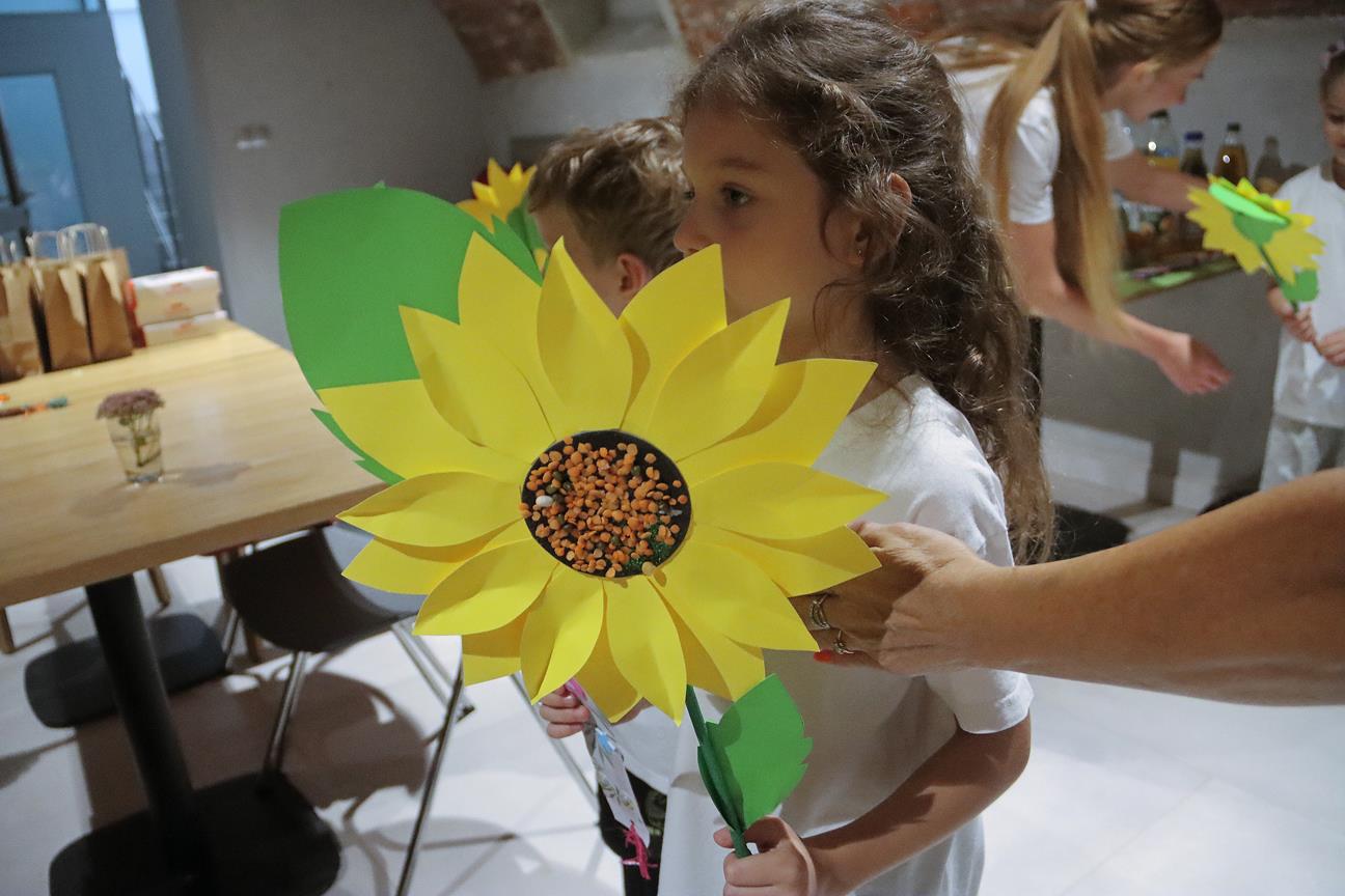 Przedszkolaki wraz z panią Moniką Sienkowską – dyrektorką przedszkola przekazały seniorom życzenia i piękne , dorodne słoneczniki.