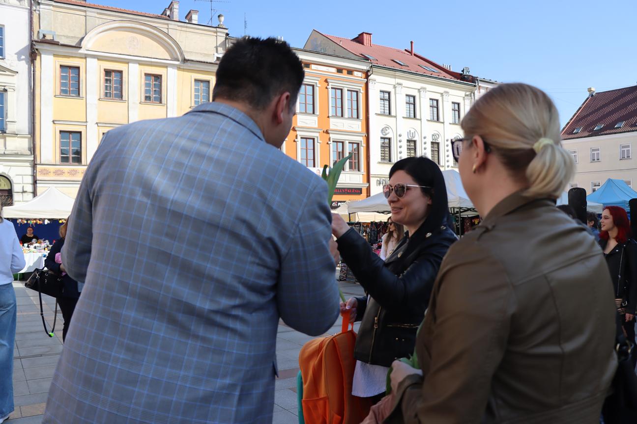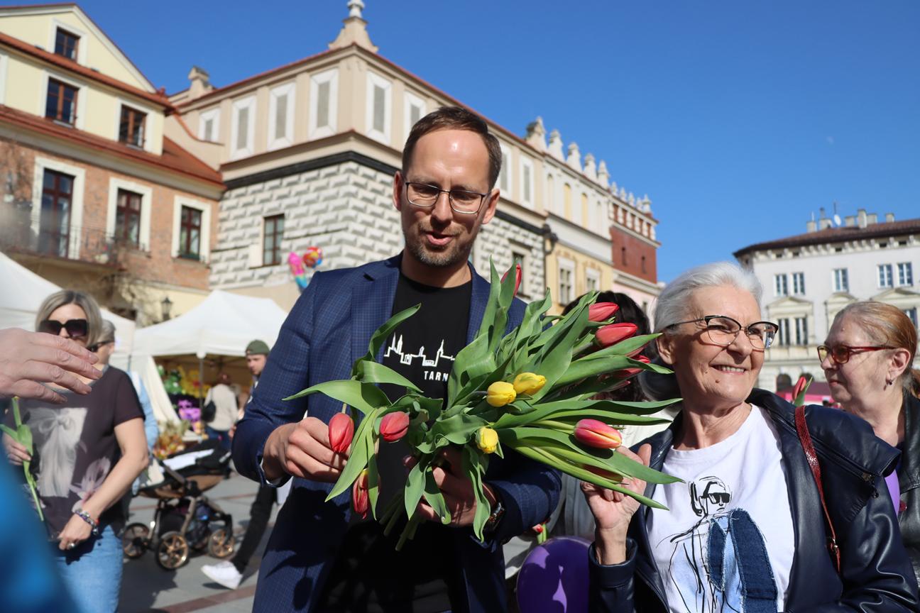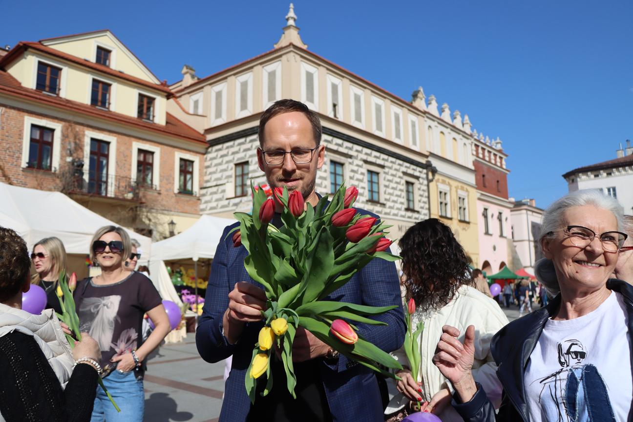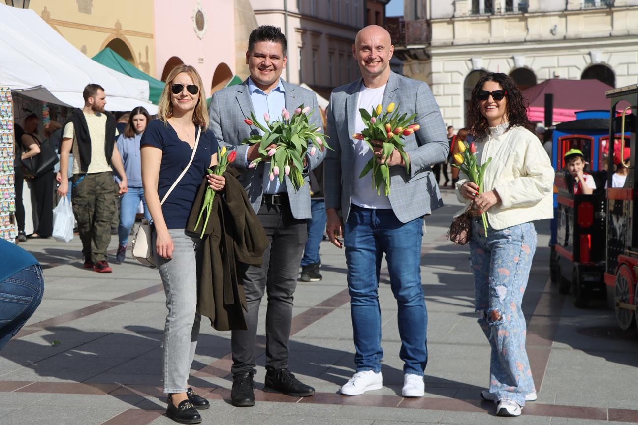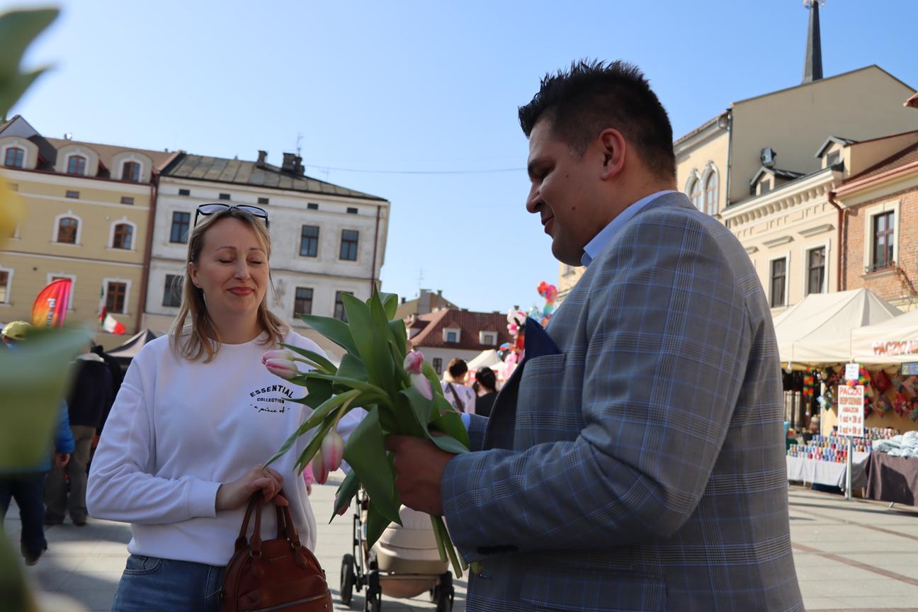 Dzień Kobiet w Tarnowie upłynął w wyjątkowo ciepłej atmosferze – i to nie tylko za sprawą pięknej, słonecznej pogody! Na ulicach miasta i na Rynku można było spotkać włodarza miasta oraz radnych, którzy z uśmiechem wręczali paniom tulipany. Co ważne, kwiaty zakupili z własnej kieszeni, co sprawiło, że ten gest był jeszcze bardziej symboliczny i serdeczny.