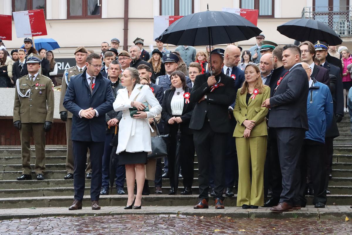 W ceremonii uczestniczyli m.in. Katarzyna Pełczyńska-Nałęcz – Minister Funduszy i Polityki Regionalnej, poseł na Sejm RP Piotr Górnikiewicz, przedstawiciele władz samorządowych na czele z Jakubem Kwaśnym, Prezydentem Tarnowa, radni Rady Miejskiej z wiceprzewodniczącym Mirosławem Biedroniem, reprezentanci służb mundurowych, organizacji kombatanckich, instytucji publicznych i stowarzyszeń, a także uczniowie tarnowskich szkół, uczestnicy rekonstrukcji historycznej „Przestrzenie Pierwszego Niepodległego”, poczty sztandarowe oraz mieszkańcy miasta.