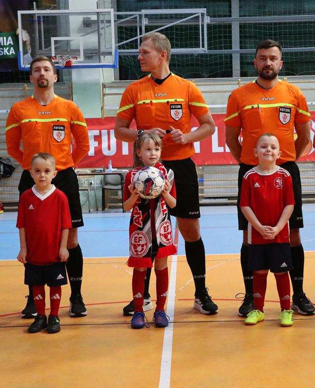Oprawę meczu wzbogaciła dziecięca eskorta – skrzaty, żaki i orliki z Zakliczyna, które dumnie wyprowadziły zawodników na parkiet, dodając wydarzeniu wyjątkowego, rodzinnego charakteru.