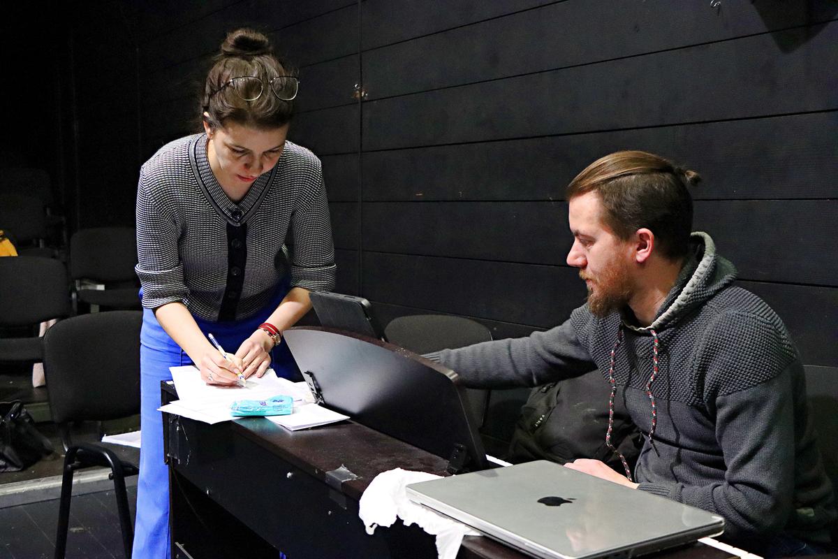 Ogromną wartością warsztatów był fakt, że odbywały się w autentycznej przestrzeni teatralnej. Z dużej sceny dochodziły odgłosy próby spektaklu „Kolacja dla głupca”.